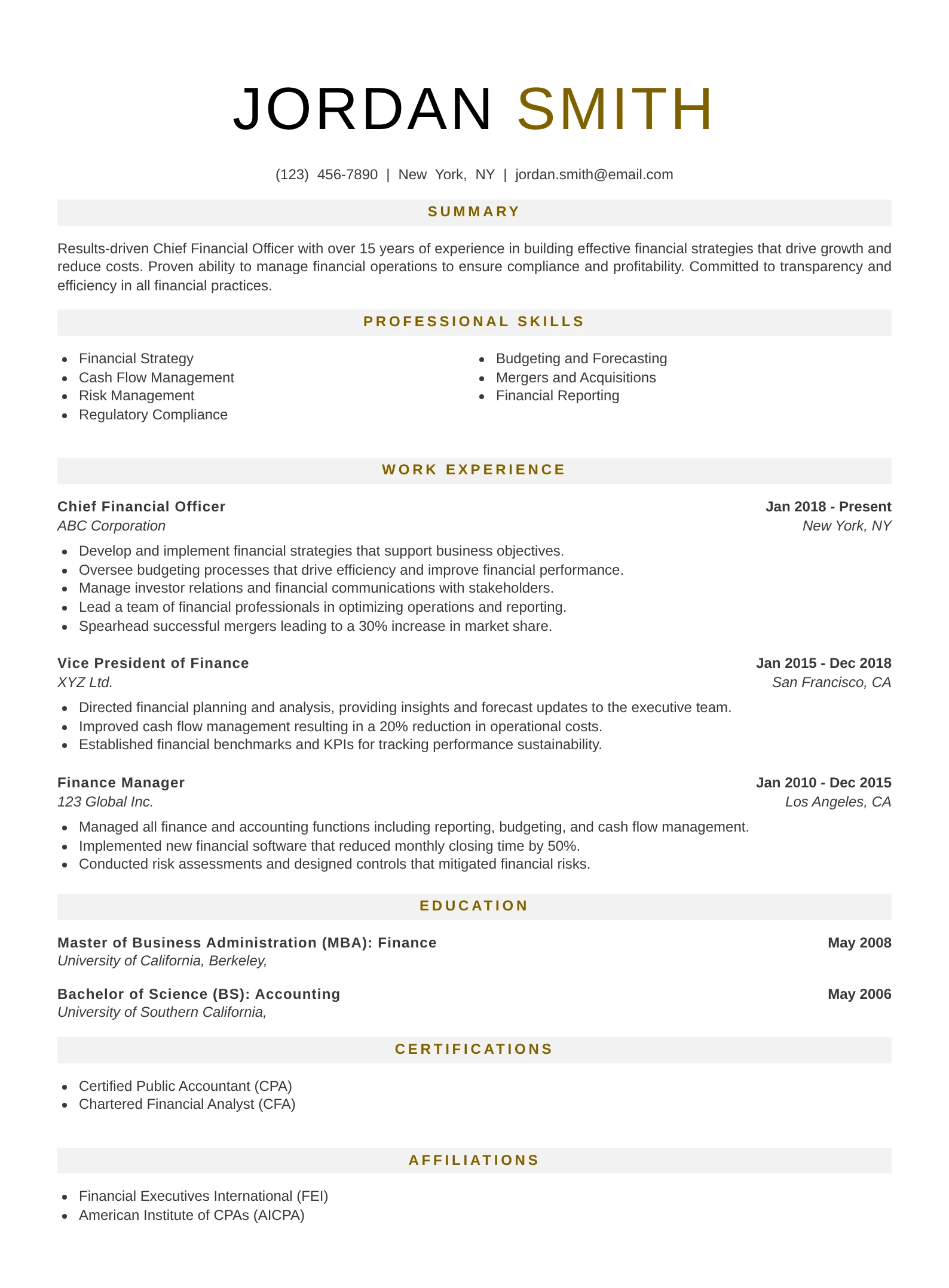 - Led multiple executive resume examples projects for internal promotions, showcasing the impact of financial strategy on business growth.