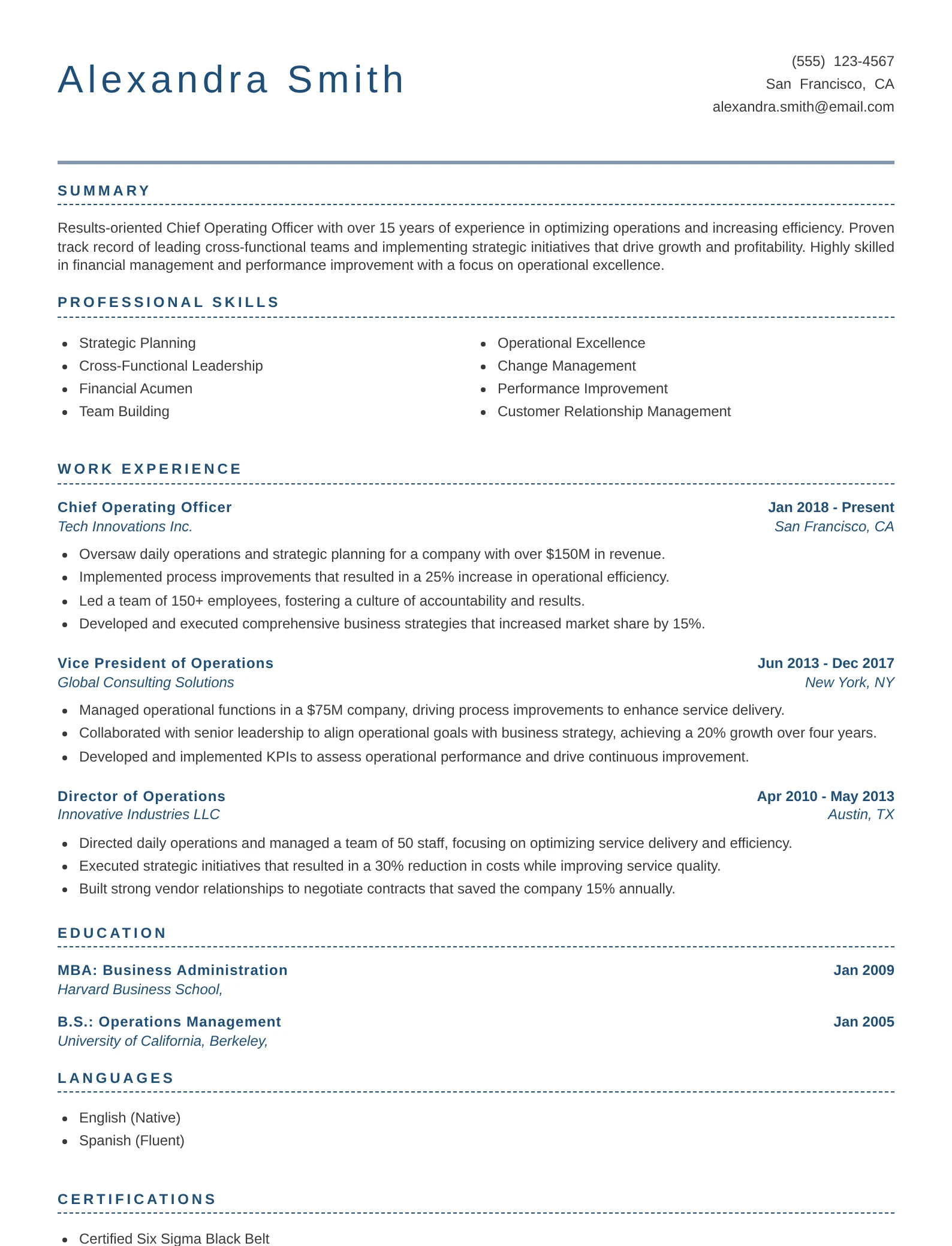 Optimize for ATS: Use relevant skills, job titles, and industry keywords like chief operating officer, business development, and operations management to pass automated screening.