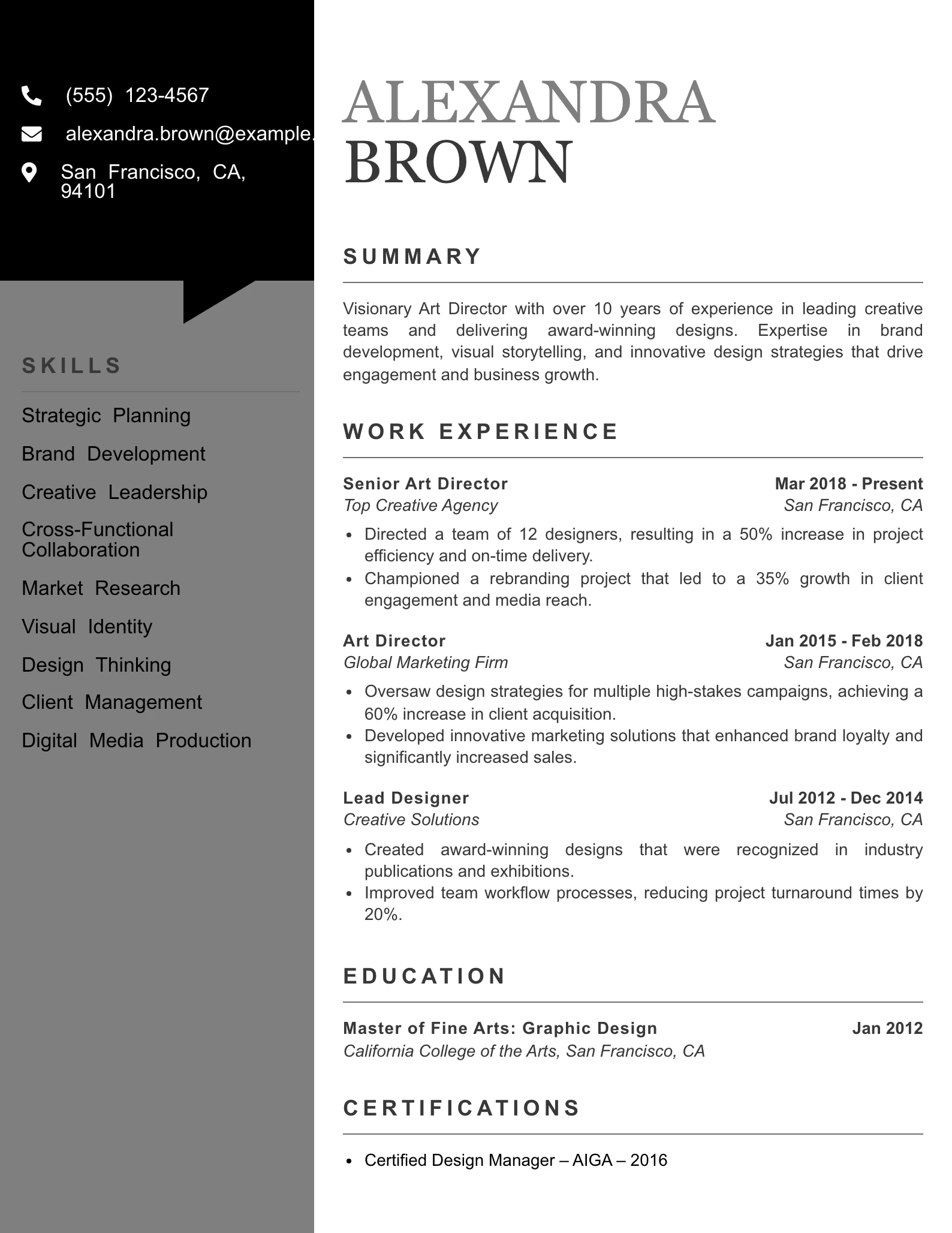 Senior Level Art Director Resume Example