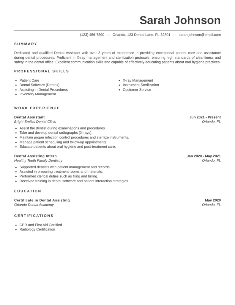 For additional inspiration, you can also explore professional dentist resume examples to understand how dental roles typically highlight skills and experience.